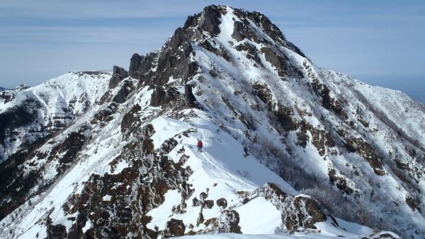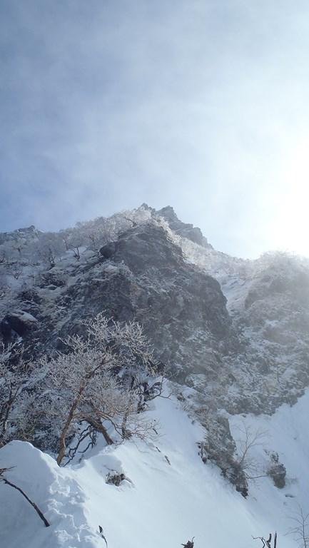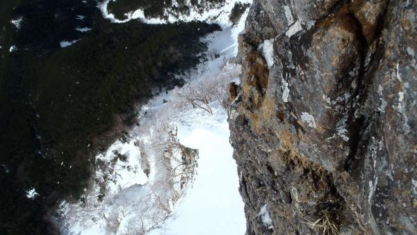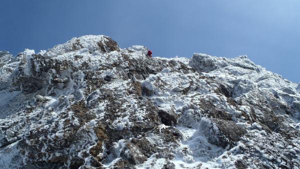 上部岩壁は傾斜が強い部分が多く、思い切ったアイゼンワークが必要です。トサカ岩の下が通常の終了点ですが、その上も登れるようです。