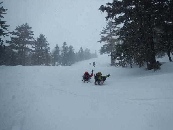 下りは来た道迷いそのまま帰りましたが、スキー場でのソリ下りはスリルがあって楽しそう。